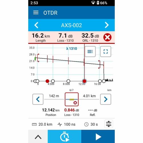 L’OTDR AXS-120 EXFO est un réflectomètre optique de dernière génération dans un format compact de type smartphone, offrant la performance, la fiabilité et la durabilité réputées des OTDR EXFO. Idéal pour tester les liens de collecte et câbles de distribution (D2) lors des déploiements FTTH, il assure des mesures précises sur des distances allant de 0,65 km à 200 km. Ce modèle est compatible avec la plateforme EXCHANGE pour une gestion automatisée et l’efficacité des interventions, ainsi qu’avec le logiciel de post-traitement FastReporter 3, disponible gratuitement.
