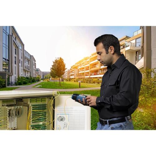Le OX1 I EXFO est un multimètre optique intelligent tout-en-un intégrant à la fois une source optique et un photomètre (puissance-mètre). Il sélectionne automatiquement la longueur d’onde appropriée et réalise une analyse simple et qualitative via l’application intégrée EXFO Advisor, avec un système de scoring jusqu’à 5 étoiles pour classer rapidement l’état des fibres.