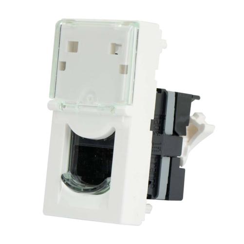 Facile à installer, elle peut être encastrée dans une boîte d’encastrement (profondeur mini 40 mm) ou montée en saillie sur cadre, goulotte ou colonne. Conforme aux normes internationales ISO/IEC 11801, EN 50173 et ANSI/TIA 568, elle garantit une installation sécurisée et standardisée. Personnalisable, elle s’intègre parfaitement à une plaque de finition pour une esthétique soignée.