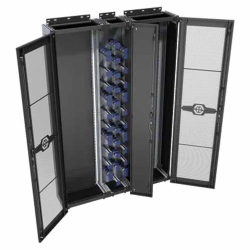 Ce rack de la série CDR (Cable Distribution Rack) offre une gestion structurée des fibres avec portée frontale complète, portes latérales perforées et porte centrale pleine pour une combinaison idéale de ventilation et de protection.