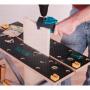 Établi repliable avec une grande surface de travail et un système permettant le réglage du plateau selon les besoins.