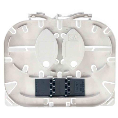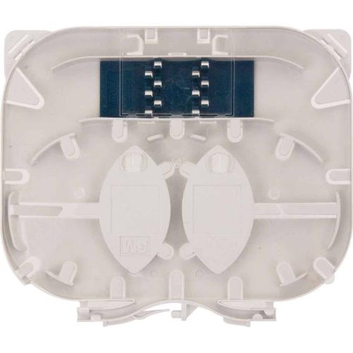 La cassette est composée d'une zone de stockage centrale qui permet également une inversion du sens d'enroulement des fibres, et de deux zones de 12 épissures permettant de stocker des protections d'épissures de diamètre 2,4mm (après rétreint).