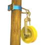 Composé d’une console de suspension en aluminium et d’une sangle à cliquet, ce dispositif pratique et rapide de mise en œuvre permet d’accrocher temporairement les poulies sur les poteaux.