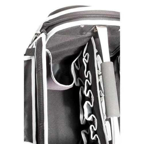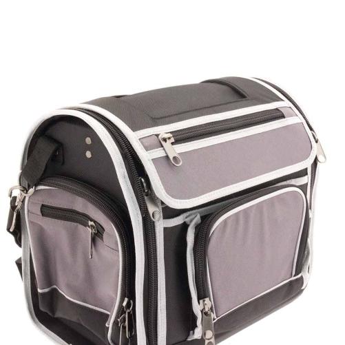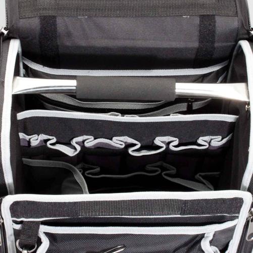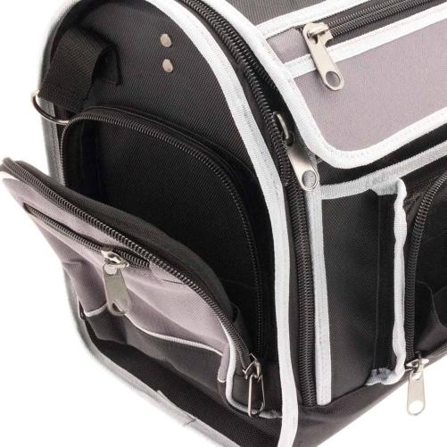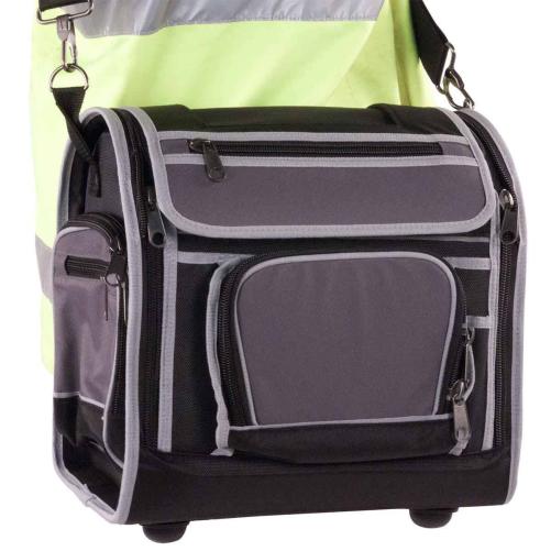 Valise porte-outils textile avec rabat amovible répondant aux critères de qualité attendus par les spécialistes télécom. Elle bénéficie de nombreuses poches de rangement à l’extérieur, d'une cartouchière pour organiser l’outillage et de rangements intérieurs pour les appareils de mesure.