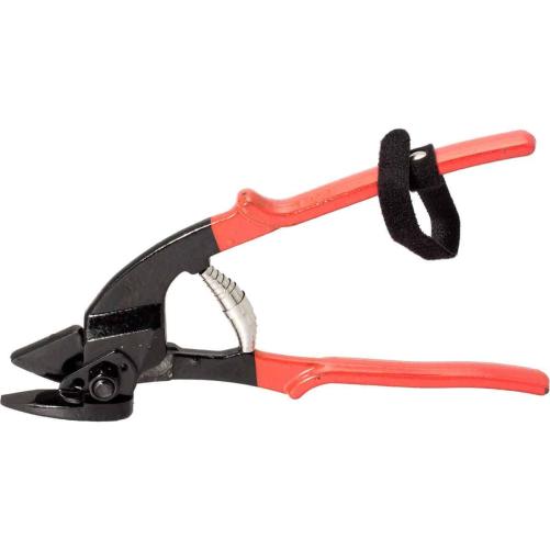 Outil de cerclage robuste avec bec plat. Cette cisaille coupe-feuillard permet la coupe précise et facile des bandes de feuillard, des conduits ou encore des feuilles d'aluminium et d'acier.