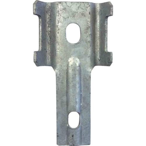 Cette semelle en aciver galvanisé à chaud sert de support de traverse 5/14 et s'installe sur appui bois à l'aide d'un boulon de tête de ligne 1/06 et un tirefond.